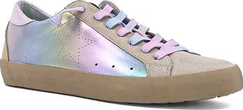 A metallic ombré design adds bold appeal to this low-top sneaker finished with breathable perforations.