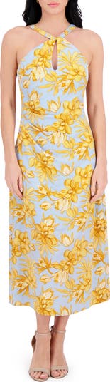 A front keyhole neatly punctuates a charming midi dress fashioned with a peached texture that's soft and comfortable to wear from day to night.
