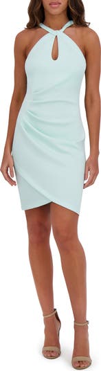 An alluring keyhole and stem-showing length define a scuba dress made with a touch of stretch to cling to your curves.
