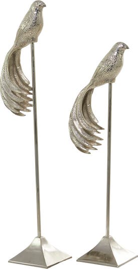 Silvertone Aluminum Eclectic Bird Sculpture - Set of 2