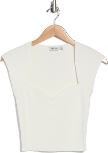 A chic option for a day or night out, this soft ribbed top is framed by a sweetheart neck and fashioned in a flirty cropped silhouette.