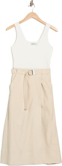 Get one-and-done style with this breathable linen-blend midi dress balancing a fitted tank above a belted, pocketed skirt.