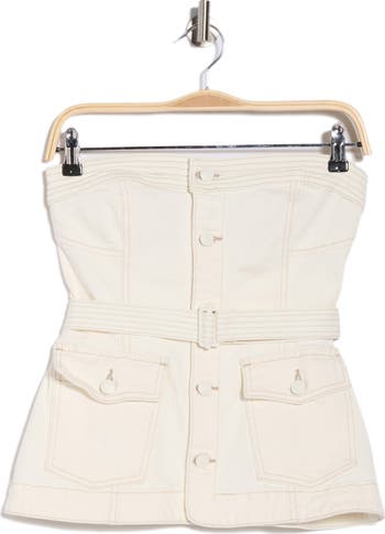 Enjoy sunny days in this strapless stretch-cotton top framed by a removable belt and utility-inspired pockets.