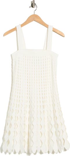 Geometric cutouts with scalloped edges distinguish a stem-showing dress that has you looking posh on date night and beyond.
