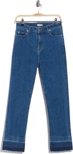 Raw-edge cuffs and a dark-blue wash lend on-trend detail to this pair of straight-leg jeans cut with a retro high-rise waist.