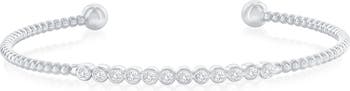Perfect to stack or wear solo, this bead-textured cuff bracelet is traced by bezel-set cubic zirconia for elegant sparkle.