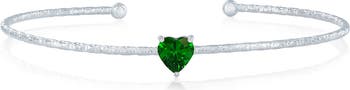 Birthstone Cubic Zirconia Heart Open Cuff Bracelet