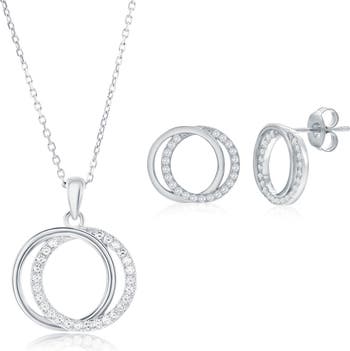 Show off elegant shine with this interlocking circle stud earrings and pendant necklace set illuminated by sparkly cubic zirconia.