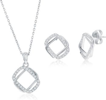 Show off elegant shine with this geometric stud earrings and pendant necklace set illuminated by sparkly cubic zirconia.