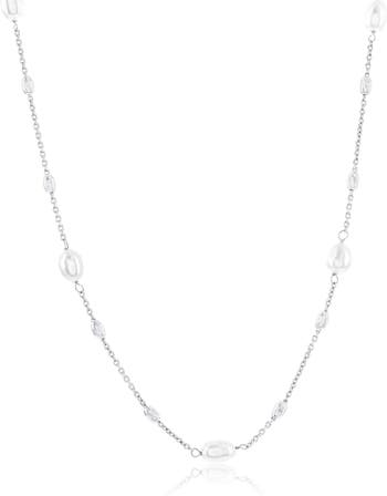 Lovely to layer or show off solo, this slender station-chain necklace showcases textured beads and lustrous freshwater pearls for elegant shine.