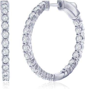 Elevate your ear stack with dazzling sterling silver hoops sparkling in pavé lab-grown diamonds.