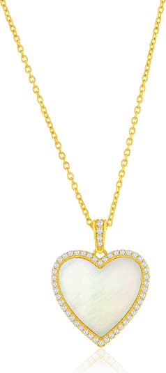Mother-of-Pearl & Cubic Zirconia Heart Pendant Necklace