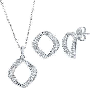 Show off elegant shine with this cushion-shaped stud earrings and pendant necklace set illuminated by sparkly pavé cubic zirconia.