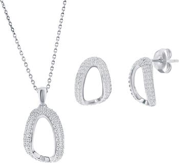 Show off elegant shine with this curved open-oval stud earrings and pendant necklace set illuminated by sparkly pavé cubic zirconia.