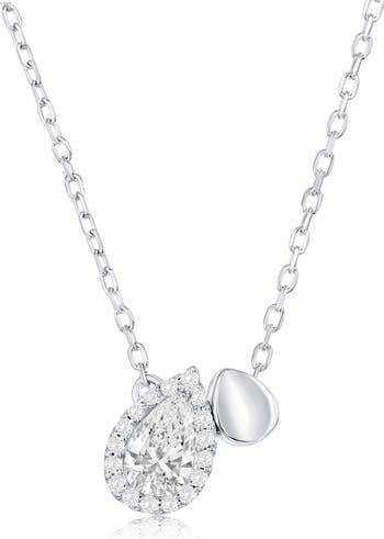 Sparkling cubic zirconia illuminate a double pear pendant necklace crafted from polished sterling silver for elegant shine.