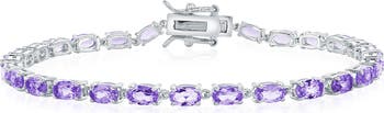 Prong-set oval-cut amethysts enrich this sparkly tennis bracelet crafted from polished sterling silver.