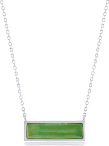 A rectangular jade slice adorns the center station of this elegant sterling silver necklace.