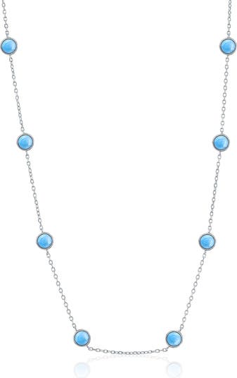 Love to layer with this dainty sterling-silver necklace that offers a pretty pop of color with bezel-set larimar cabochon stations.