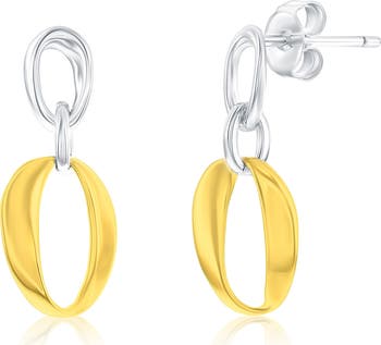 Show off fluid shine with these organically shaped oval drop earrings crafted from sterling silver with a glossy two-tone finish.