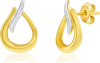 Show off fluid shine with these asymmetric pear-shaped stud earrings crafted from sterling silver with a glossy two-tone finish.
