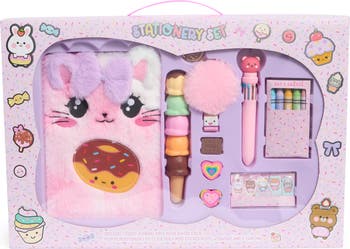 A perfect gift for artists and writers, this stationery set includes a furry cat sketchbook, writing supplies and an adorable keychain.