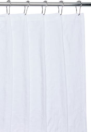 Turn your bathroom into a spa retreat with this cotton shower curtain made with buttonholes along the top for easy hanging.
