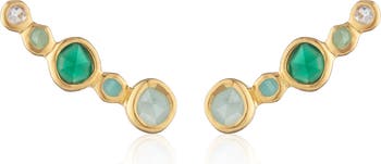 Part of our online trunk show, this style is available for a limited time from November 10 through December 23. Studded with bright and colorful stones, these contemporary ear climbers are designed to rest against the length of the earlobe.