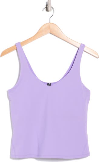 This active tank is made with stretchy, moisture‑wicking fabric and features a scooped V‑neck with a built‑in shelf bra and removable memory foam cups for supportive, comfortable wear.