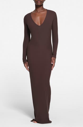 A classic everyday style, this V-neck maxi dress in ribbed stretch modal hugs your body with relaxed comfort.