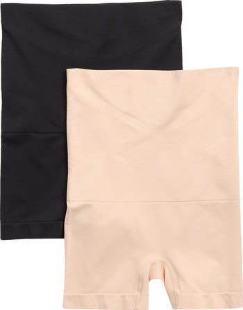 A pack of two undershorts made from soft, stretchy nylon and done in a high-waist silhouette are designed to mold and shape while seamless fabrication makes them virtually undetectable underneath clothing.