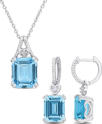 This matching set pairs a dainty chain necklace with drop earrings that are shimmering with blue and white topaz.