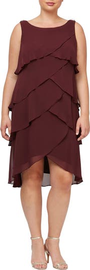 Tiered detailing adds volume and shape to a sleeveless dress.
