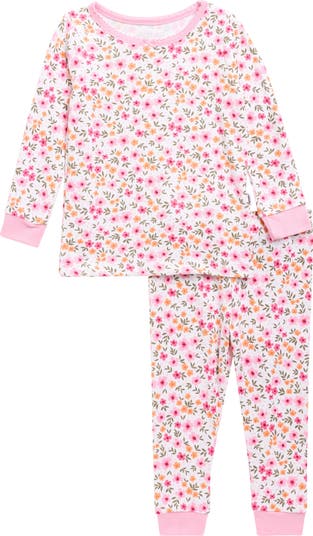 Bedtime gets a sweet upgrade with these snug-fitting two-piece pajamas cut from stretchy fabric and covered in a baby-approved print.