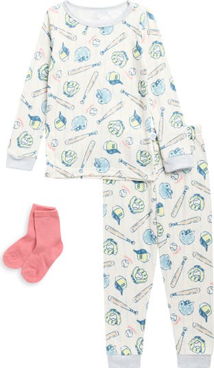 Elevate their bedtime routine with these snug-fitting, two-piece pajamas featuring a fun print and coordinating socks.