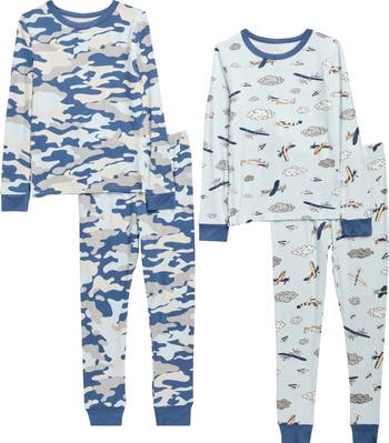 A mix-and-match set of fitted pajamas in a duo of prints brings fun and excitement to your kiddo's bedtime routine.