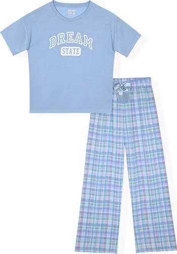 They'll drift off into dreamland in this cozy set featuring a graphic T-shirt paired with plaid pajama pants.