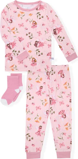 Your little dreamer will have whimsical visions of playing in flower fields with fairies when they wear this cozy two-piece pajama set that comes complete with socks.