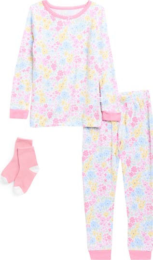 Elevate their bedtime routine with these snug-fitting two-piece pajamas featuring a fun print and coordinating socks.