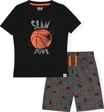 Cozy and cool, this basketball-inspired graphic T-shirt and pajama shorts set is a fun pick for sleepy kiddos.