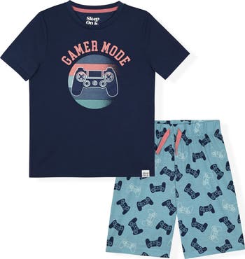 Cozy and cool, this gamer-inspired graphic T-shirt and pajama shorts set is a fun pick for sleepy kiddos.