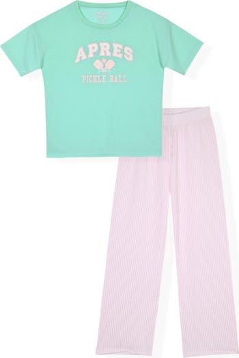 They'll drift off into pickle ball dreamland in this cozy set featuring a graphic T-shirt paired with striped pajama pants.