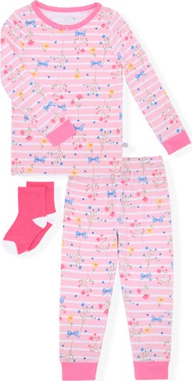 They'll be seeking out sweet dreams in these cozy pajamas made from soft, stretchy fabric and made complete with coordinating socks.