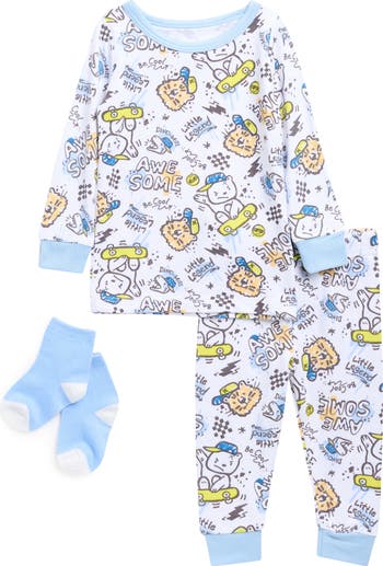 Bedtime gets a fun upgrade with these snug-fitting two-piece pajamas featuring a little legend-inspired print and coordinating socks.