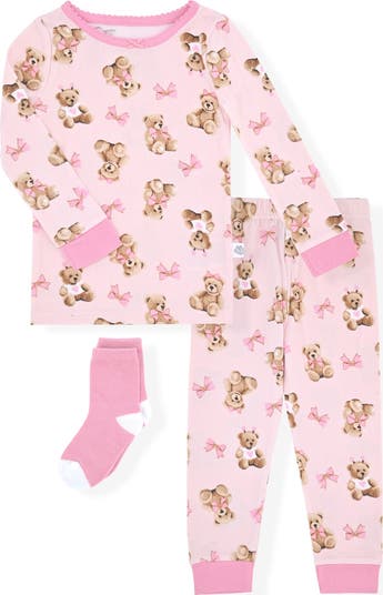 Your little dreamer will love this adorable two-piece pajama set covered in teddy bears and finished with cozy socks.