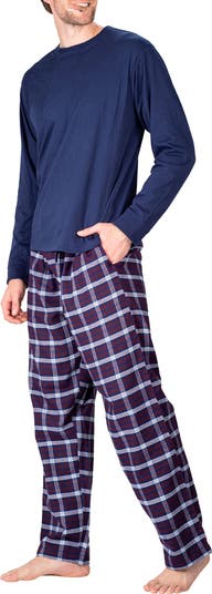Perfect for gifting or updating your cozy staples, this two-piece set pairs a long-sleeve T-shirt with plaid flannel pajamas, ideal for lounging or sleeping.