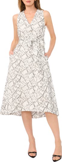 • CeCe Floral Print Tie Waist Long Sleeve Dress