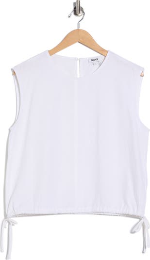 Breeze through warm days in this lightweight linen-blend tank framed by a cinching drawstring hem with side ties.