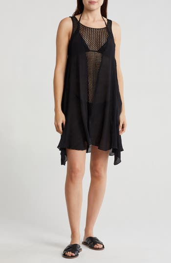 Panels of open knit add texture and breathability to this sleeveless cover-up dress perfect for a day at the beach or by the pool.