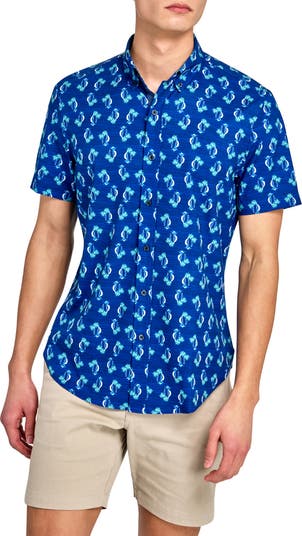 Stay cool and look sharp in this slim-fit button-up shirt made from moisture-wicking fabric with four-way stretch for all-day comfort.
