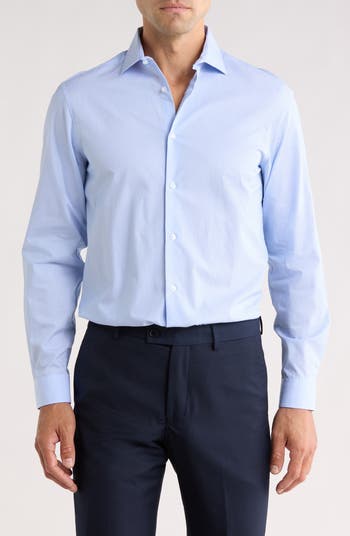 Move from the boardroom to the taproom without compromising on comfort in this stretchy cotton-blend dress shirt cut in a polished slim-fit silhouette.